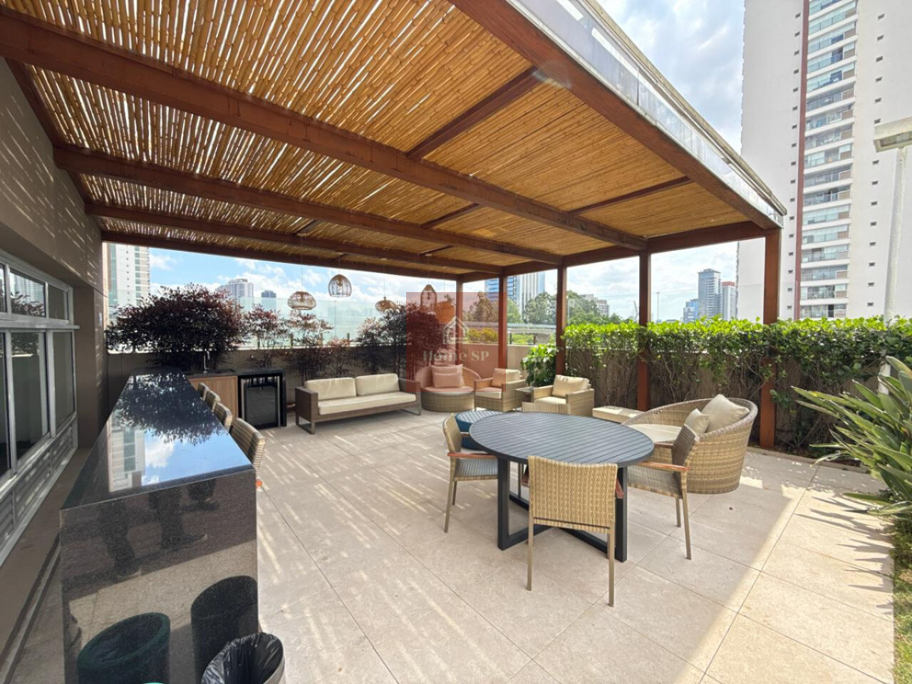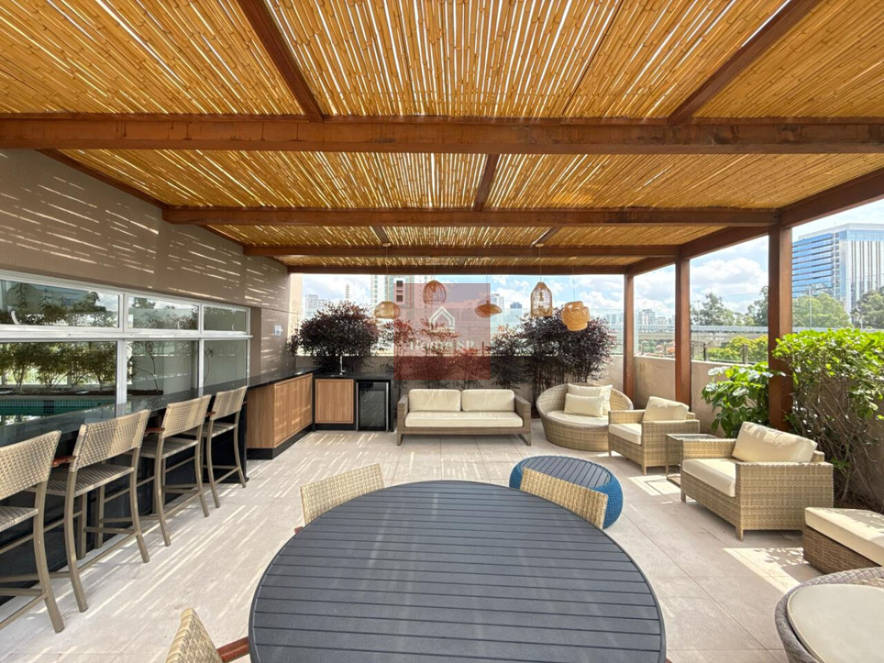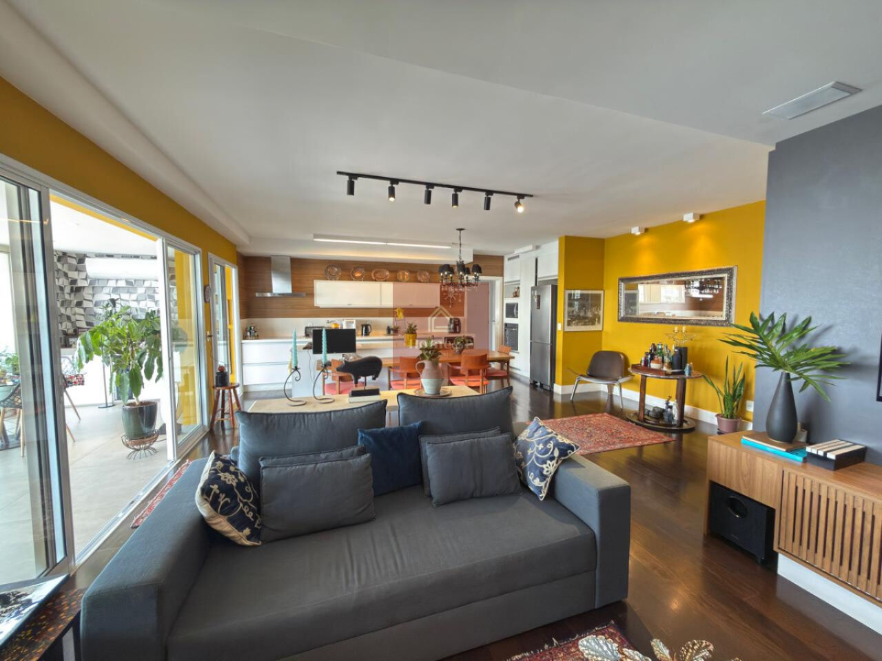 Ambientes sociais bem decorados e área externa charmosa