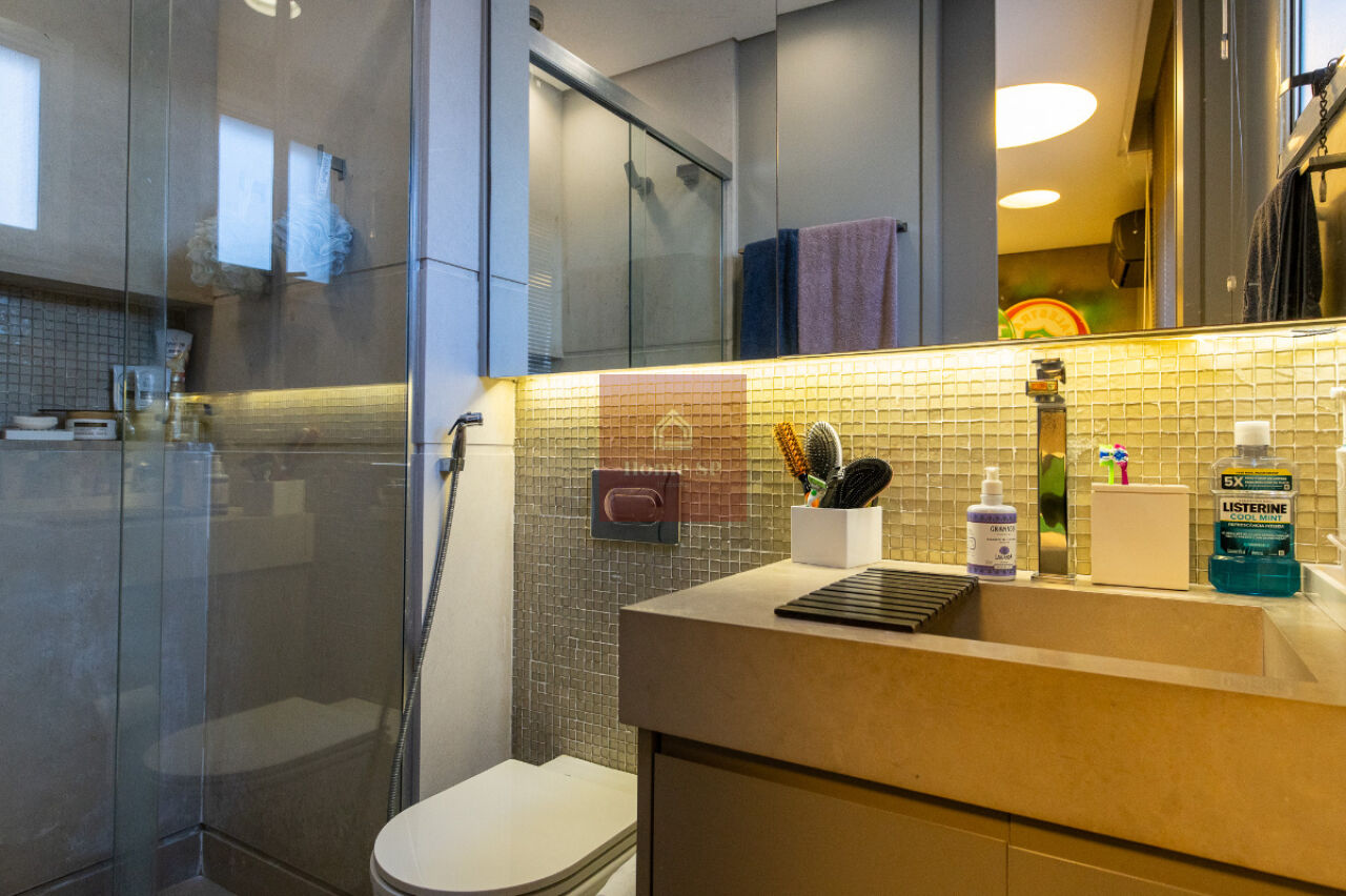 * Detalhes de Design: Banheiros com box até o teto (estética clean) e marcenaria de alto padrão.