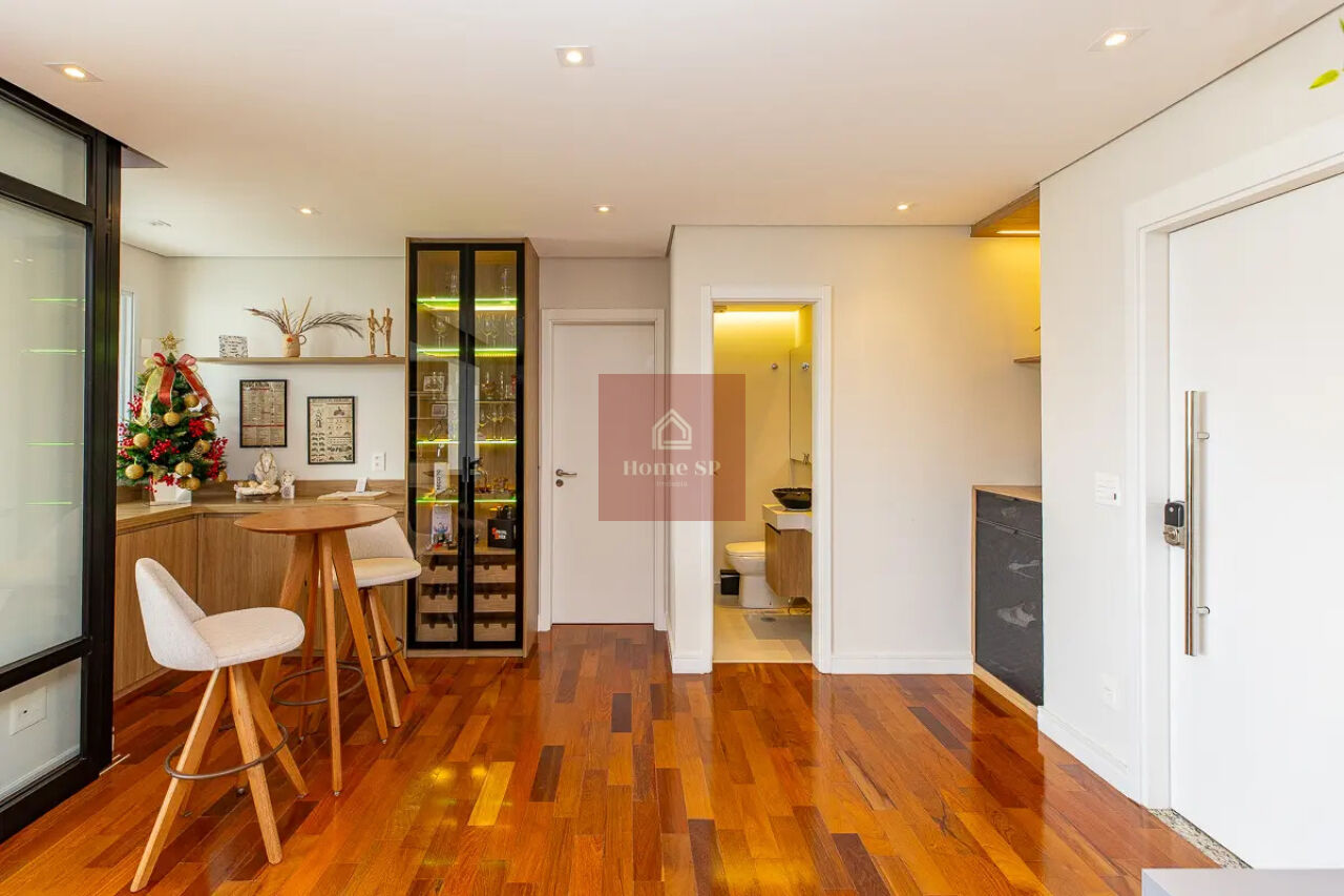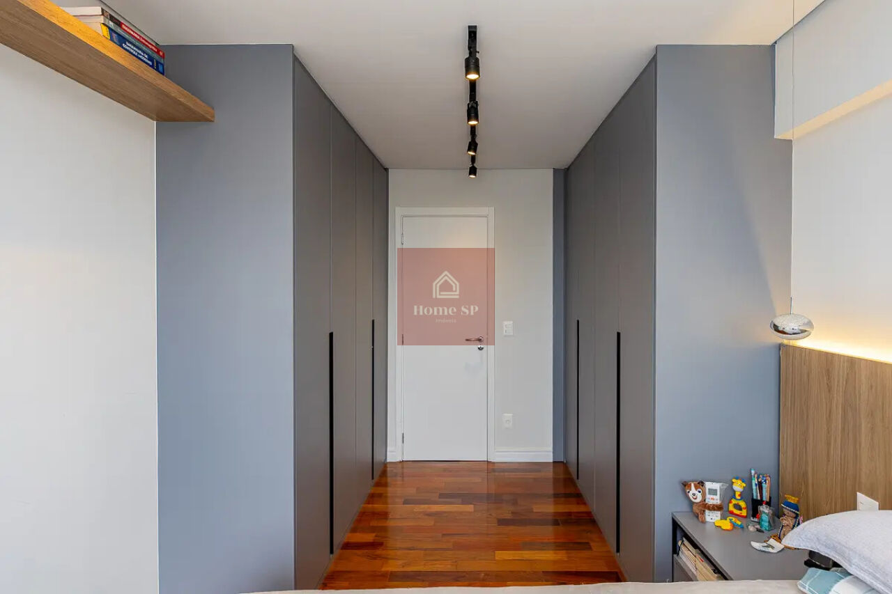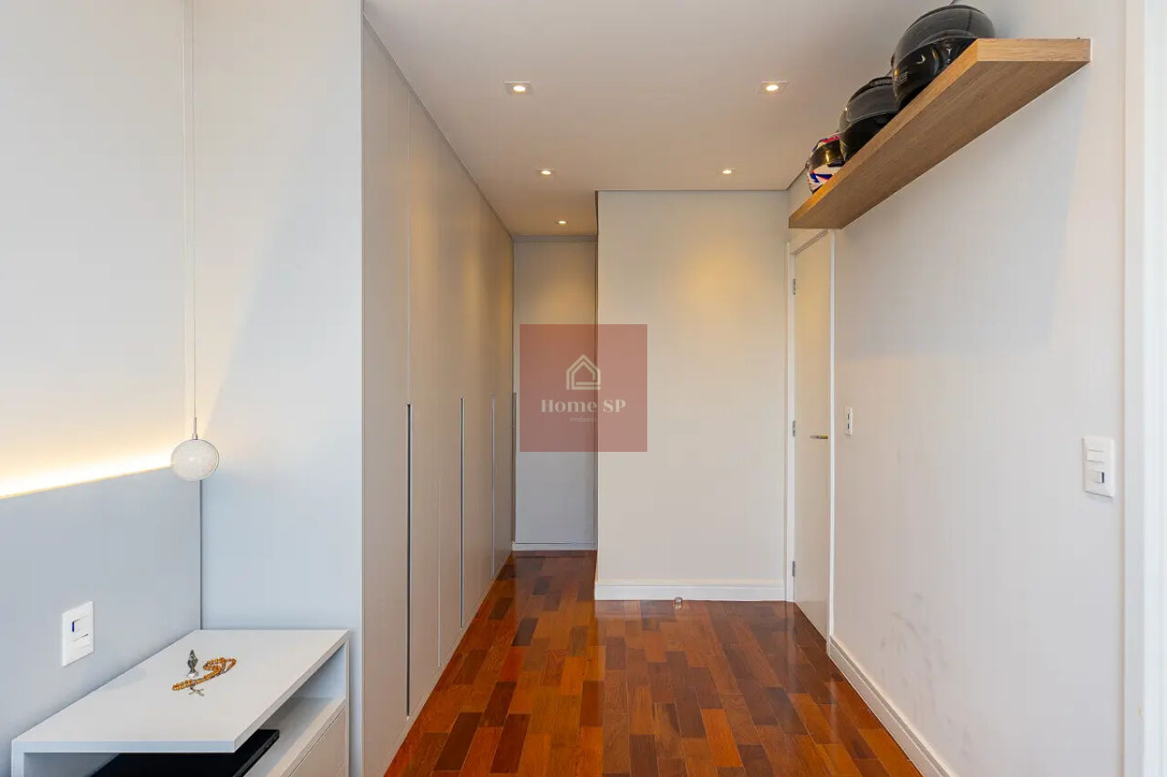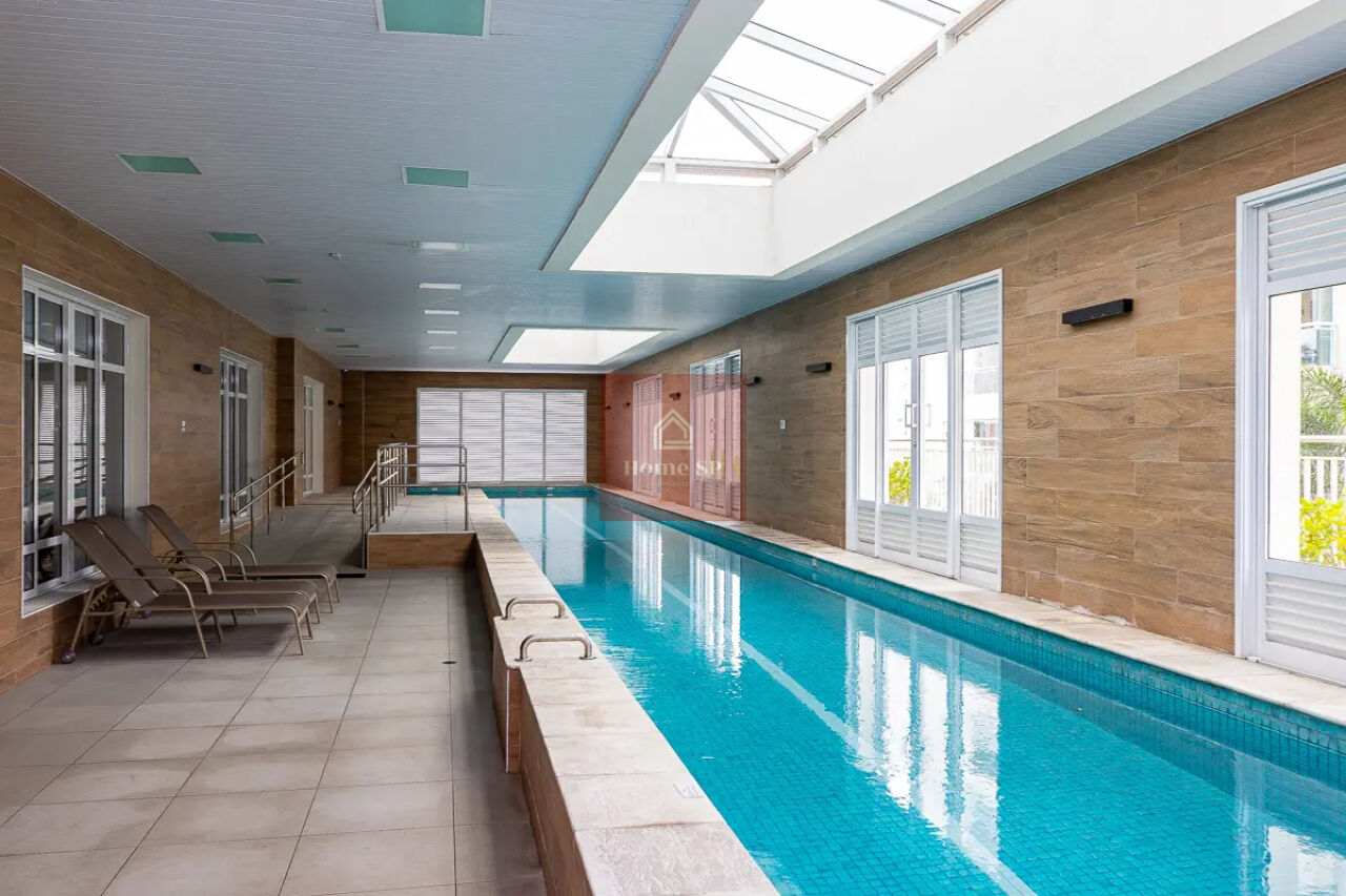 O acabamento é impecável, com piso em madeira ipê rosa, marcenaria de alto padrão e projeto arquitetônico sofisticado. A infraestrutura do apartamento inclui aquecimento de água via caldeira central do prédio, garantindo conforto e eficiência.
