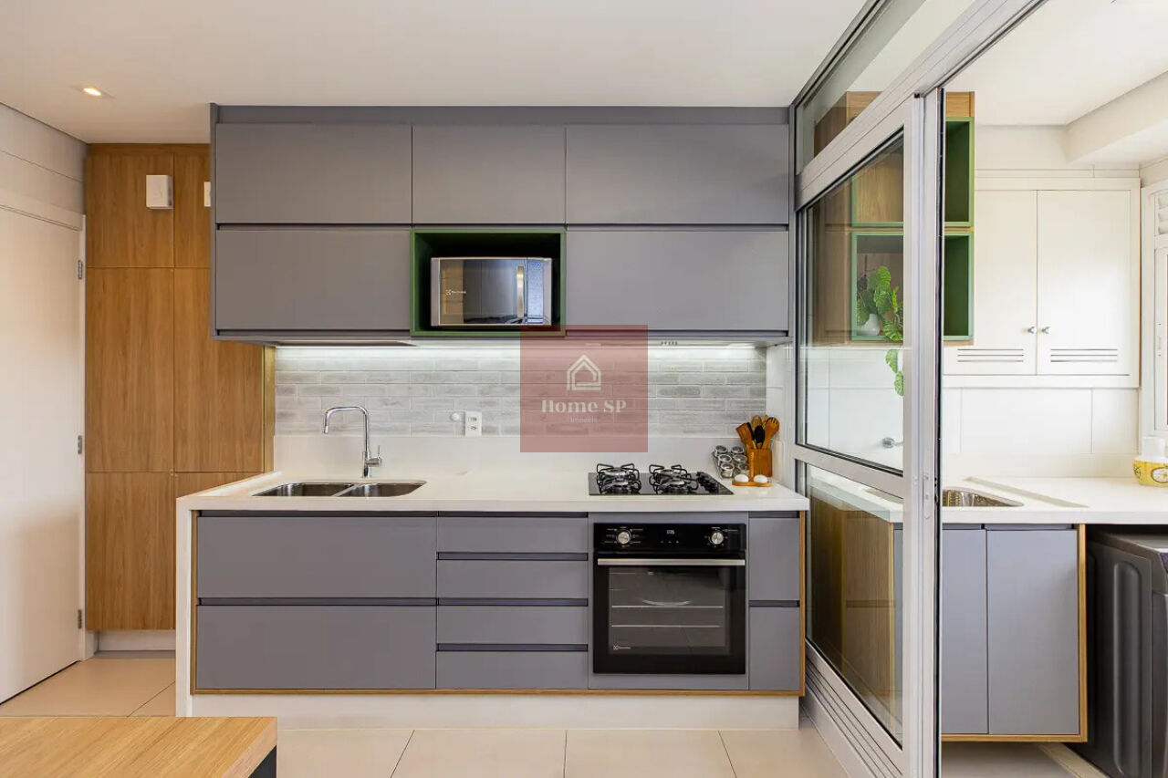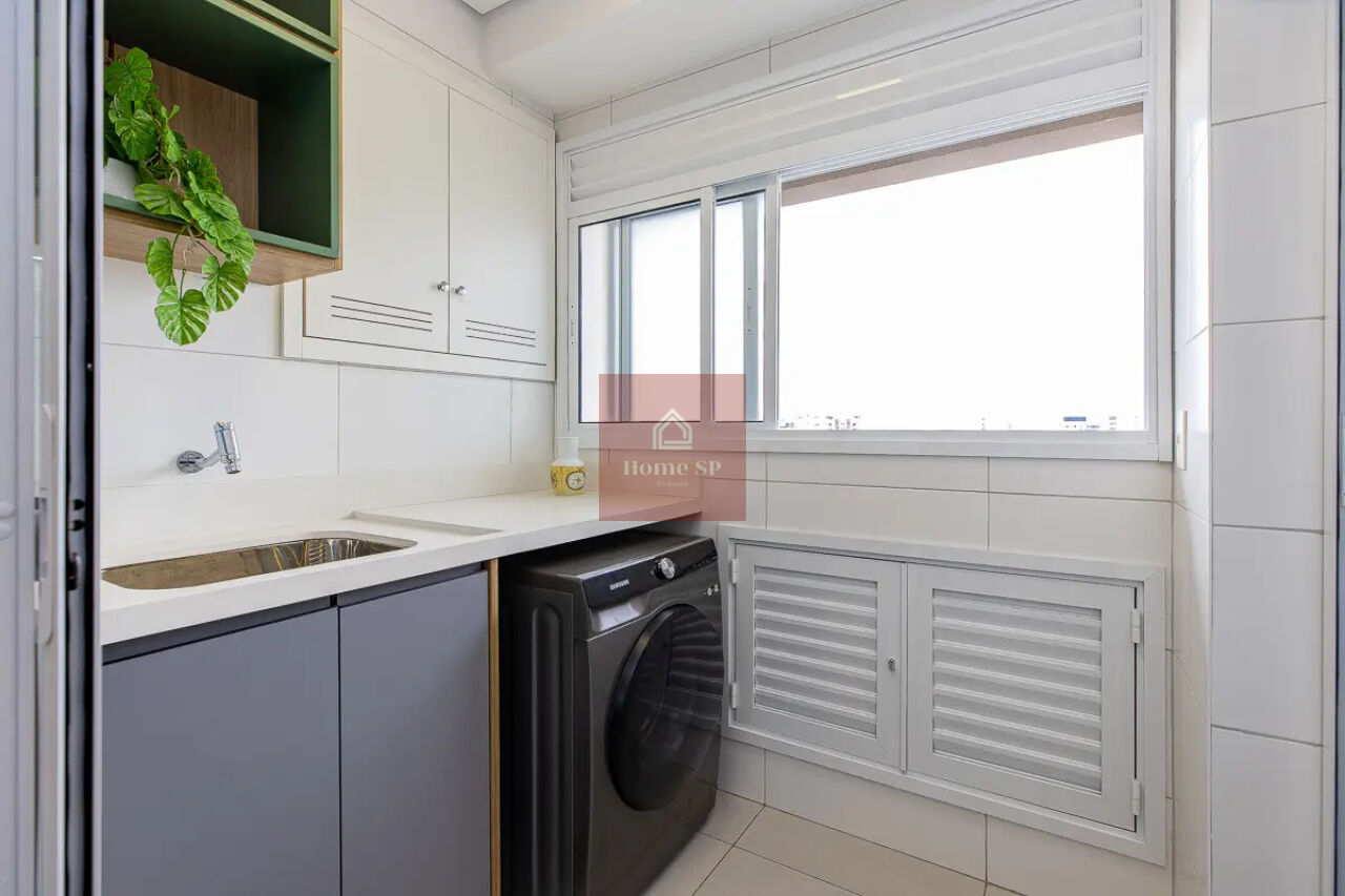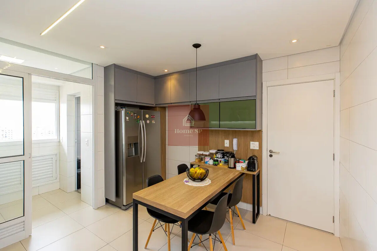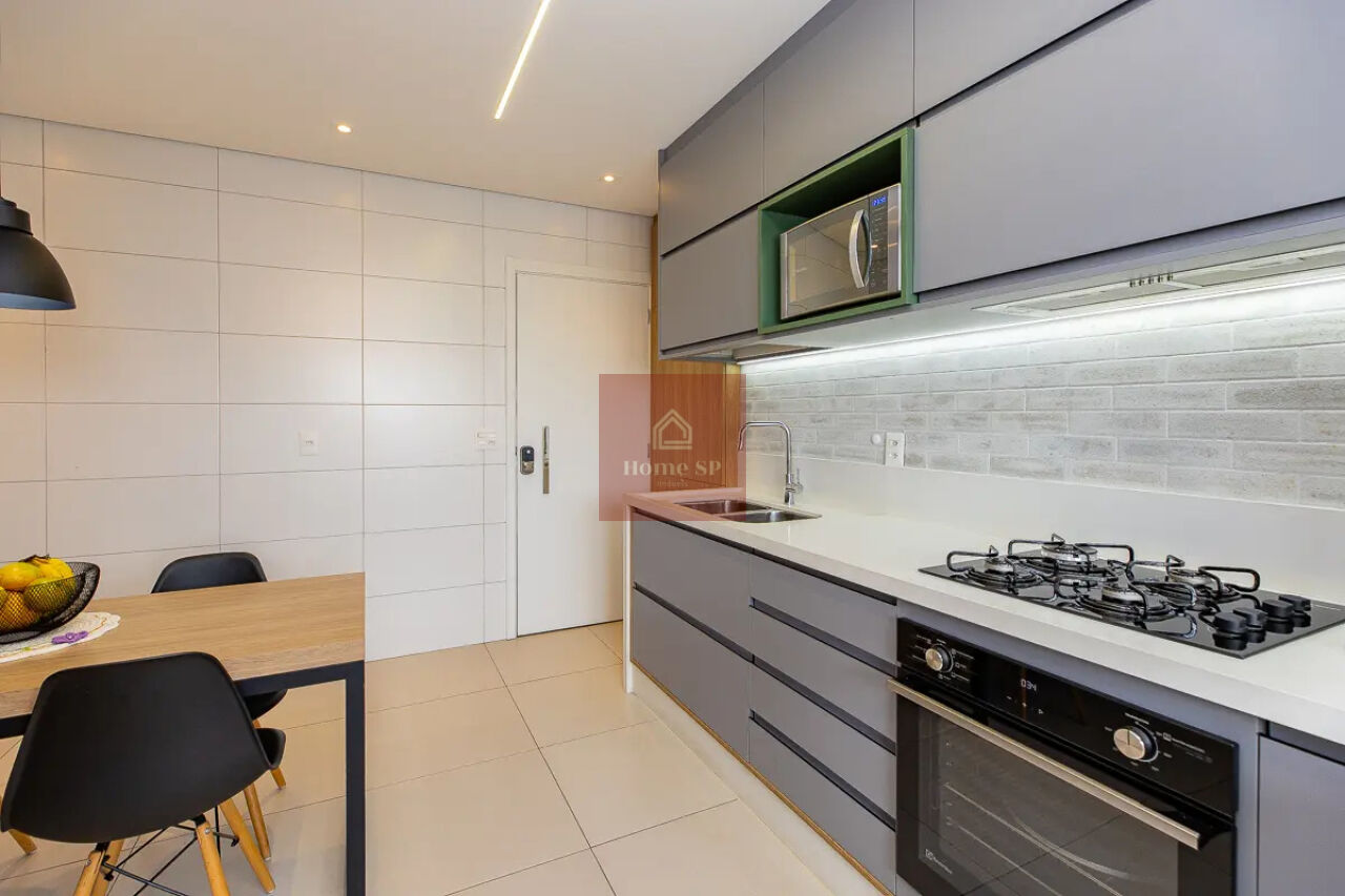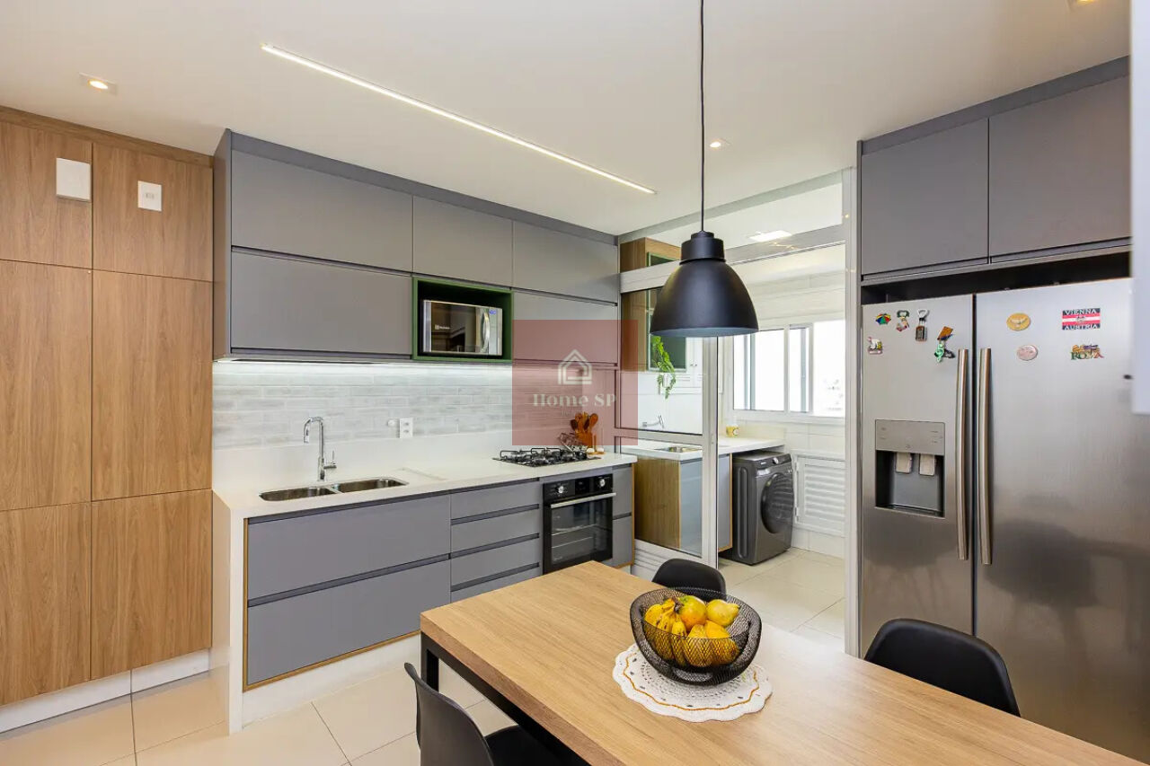 A cozinha conta com armários planejados e excelente funcionalidade, além de uma área de serviço bem distribuída.