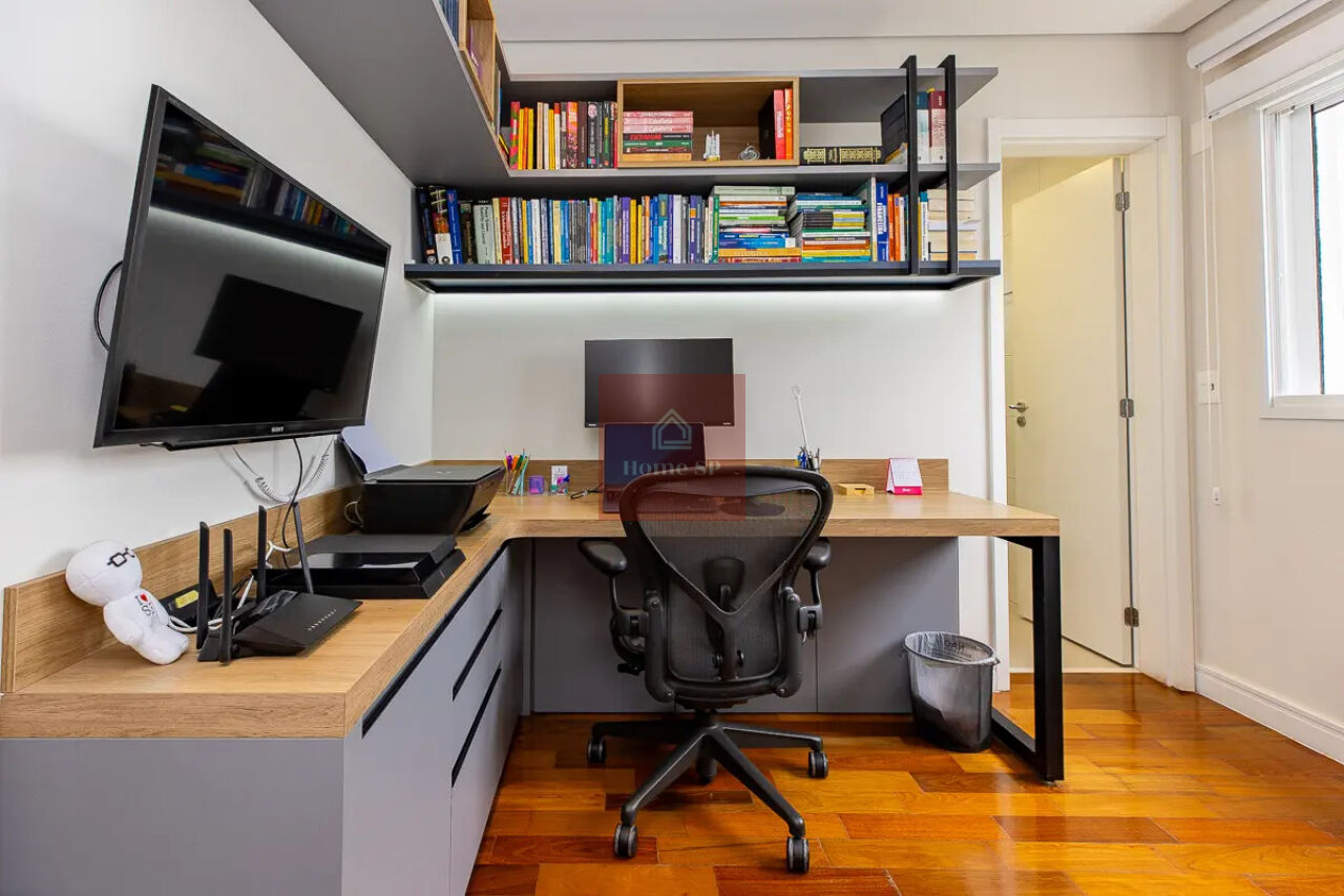 O apartamento dispõe ainda de um home office planejado, ideal para quem trabalha em casa.