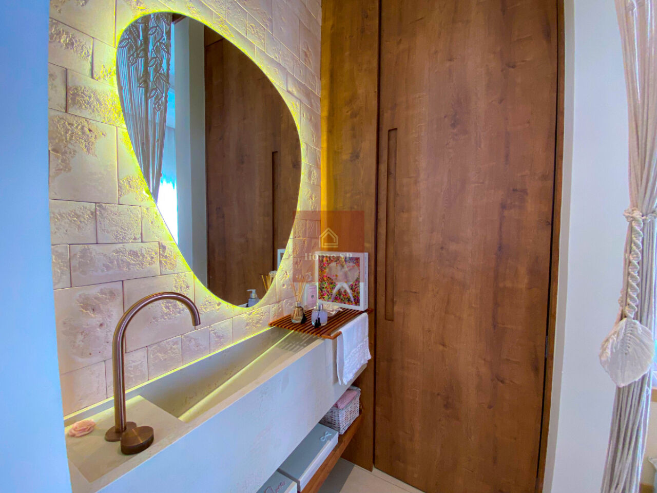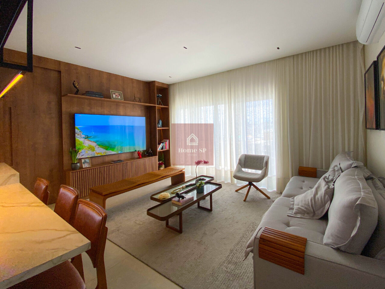 O uso de madeira e materiais nobres reforça a sensação de acolhimento e elegância.