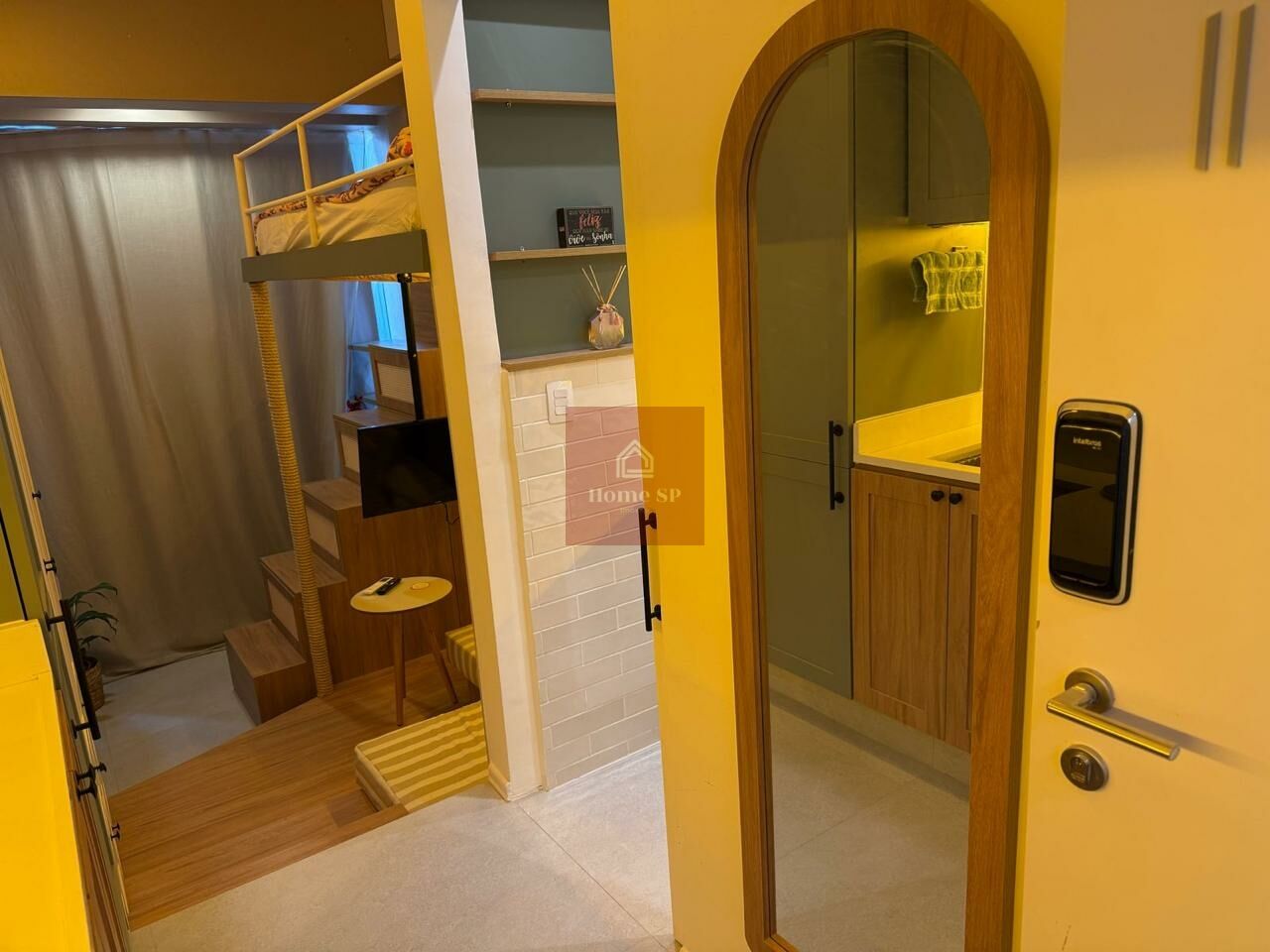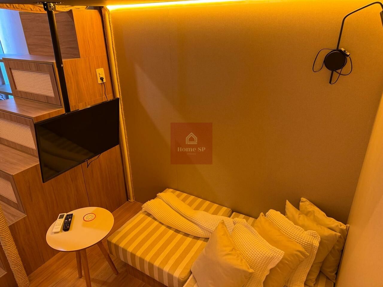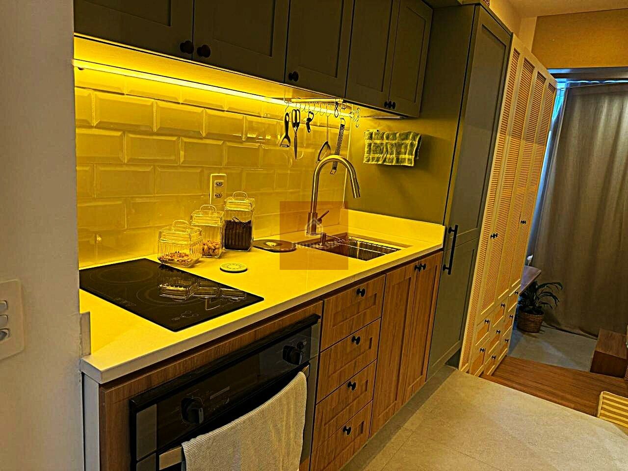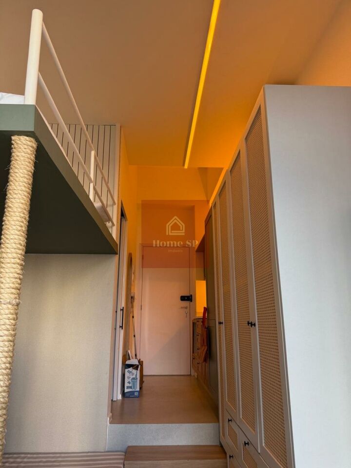 Lindo Studio finamente mobiliado com pé direito alto, pronto para entrar e morar.