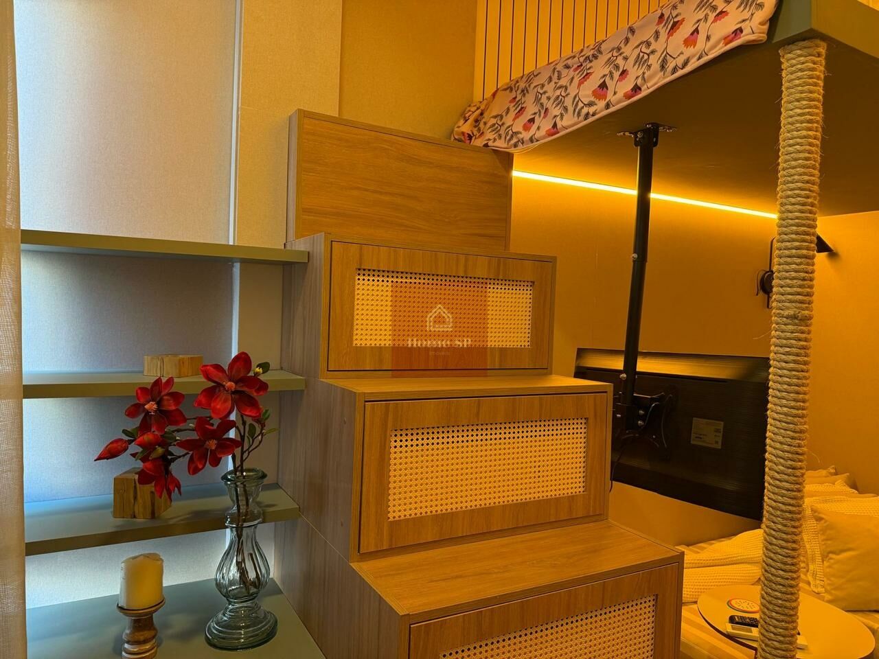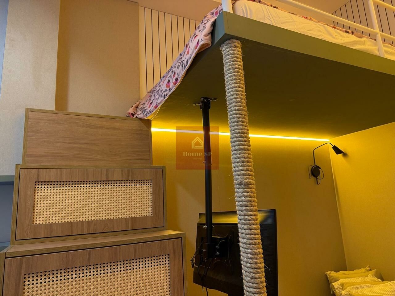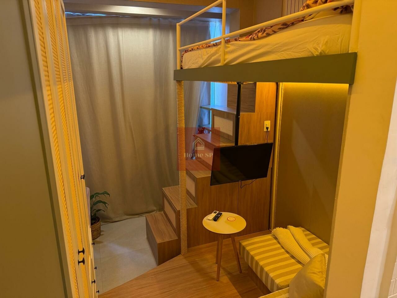 Lindo Studio finamente mobiliado com pé direito alto, pronto para entrar e morar.