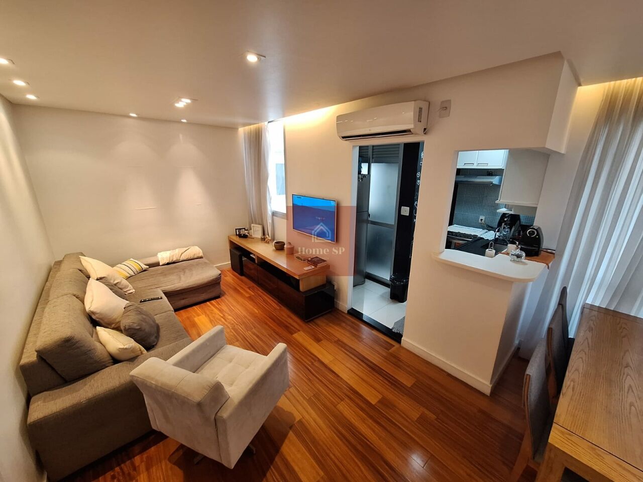 Sala ampla no contrapiso, lavabo, terraço Gourmet, cozinha com concei...